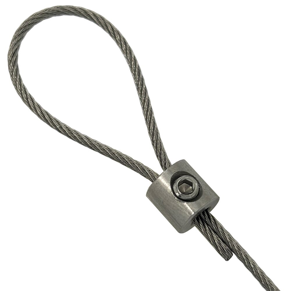 Simply use an allen key (not supplied) to create your custom steel wire rope loop anywhere
