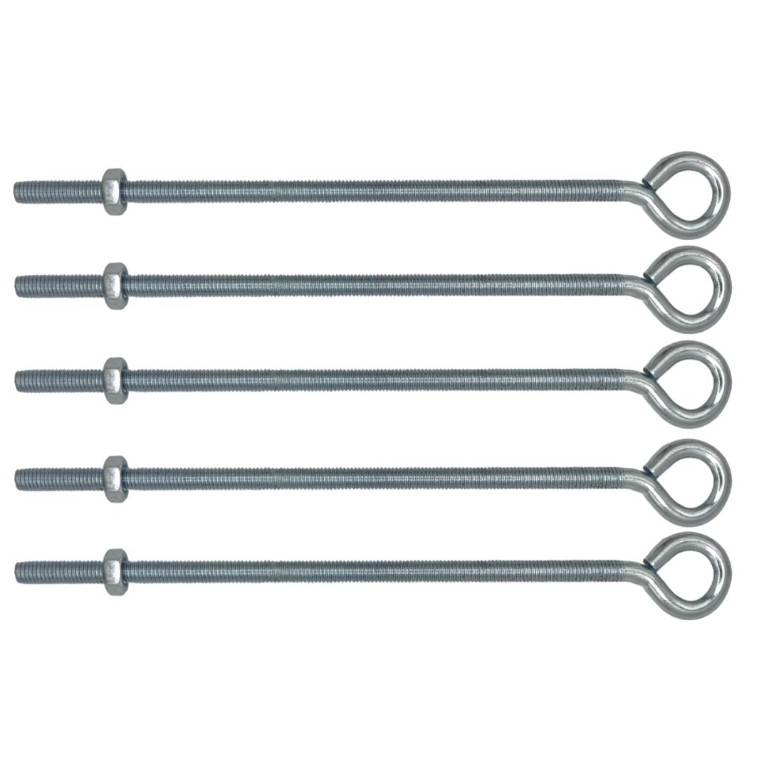 Pack of 5 - 8mm x 200mm BZP Straining Unwelded Eye Bolt - Fence Wire Straining Eye