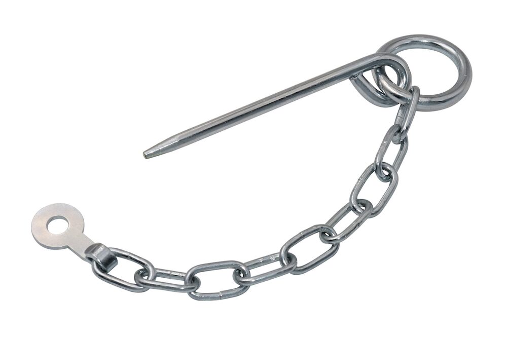 Retaining cotter pin supplied complete with welded ring and 190mm length x ø3mm bzp chain complete with fixing tab