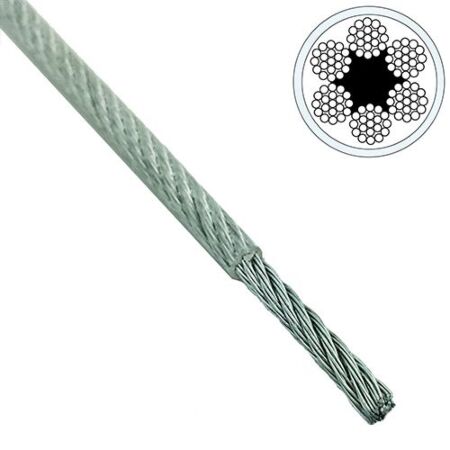 2mm-3mm 7x7 Clear PVC Galvanised Steel Wire Rope - Per Meter