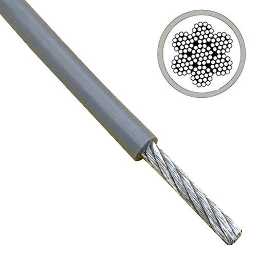 3mm-4.5mm 7x19 Grey PVC Galvanised Steel Wire Rope - Per Meter