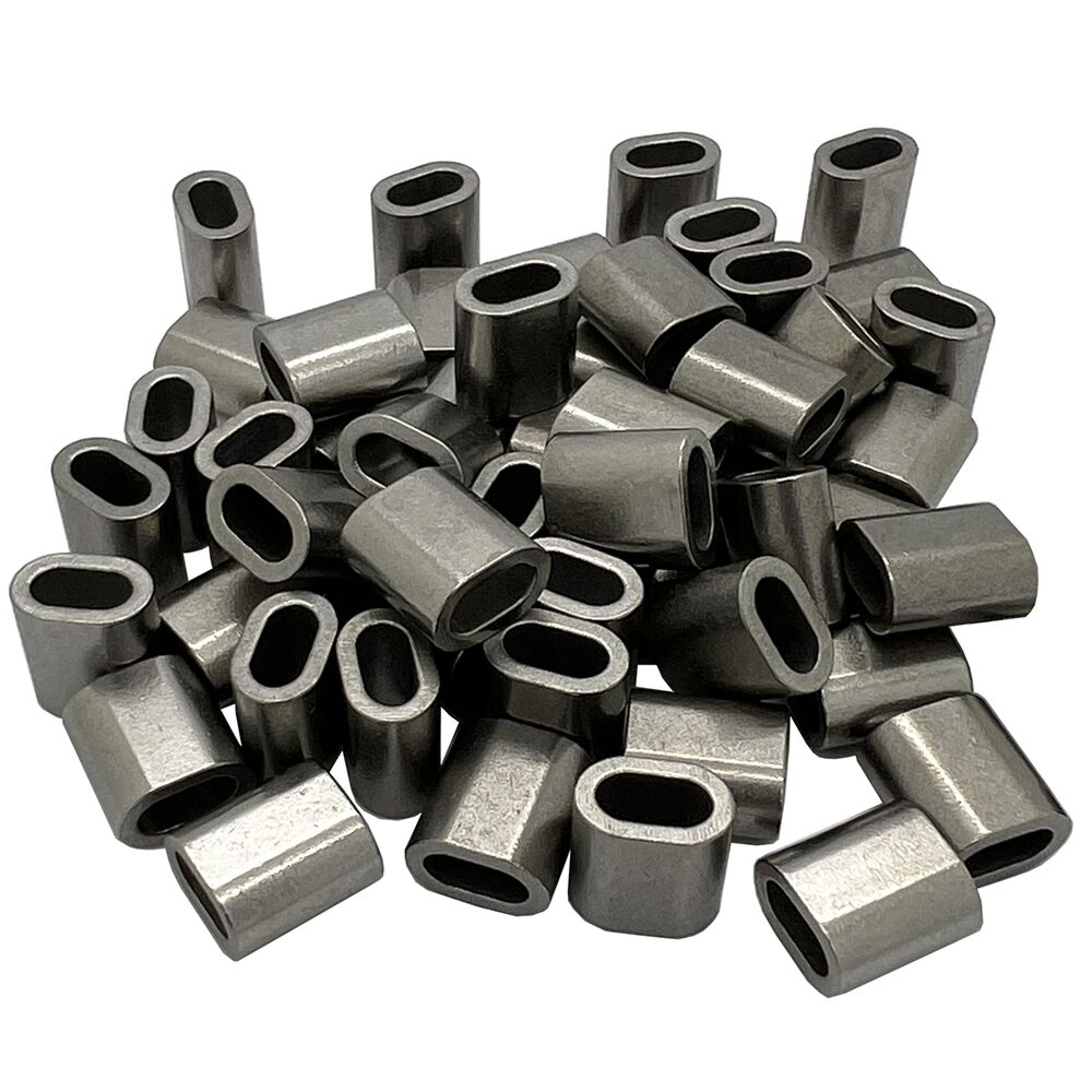 Check out this 3mm stainless steel wire rope ferrule, ready to be crimped or swaged to make a loop or eye on your wire rope. 100 pack