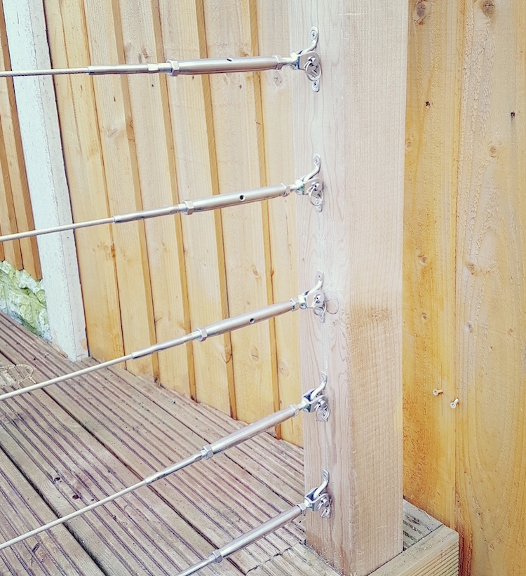 This system suits 3mm, 4mm and 5mm diameter steel wire rope balustrade
