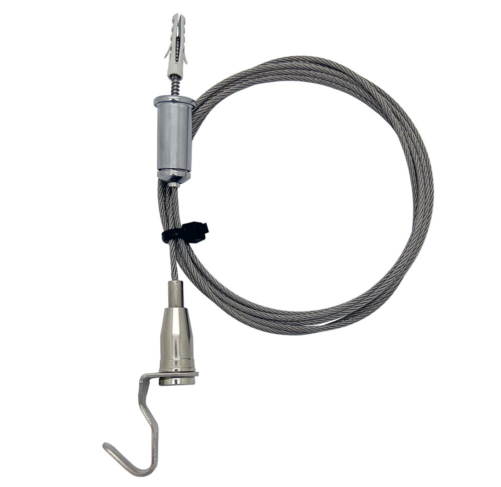 GS Products offer a reliable ceiling wire rope cable hanging kit with adjustable picture hook hanger and 2 meter maximum drop.