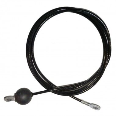 This replacement gym cable has been custom made with swage eyes on either end, one of which has a rubber shock ball and washer.