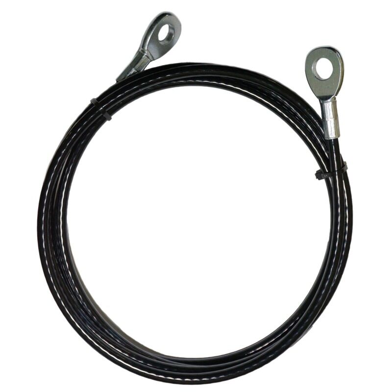 This replacement gym cable has been custom made and fitted with eyelets on either end. It is constructed from 4mm diameter steel wire rope and coated with a tough nylon coating, bringing the overall diameter to 5.2mm. It is flexible and durable, as required in the gym environment.