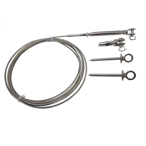 One end comes with a pre-swaged wire rope adjuster and the other end has a swageless jaw fitting which can be easily attached to the blank wire rope.