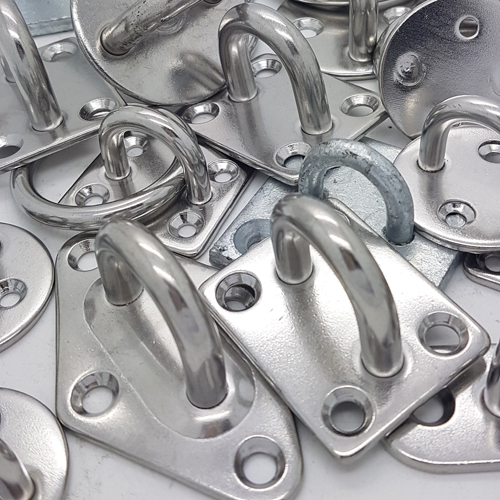 We stock a huge variety of stainless steel and galvanised steel eye plates, all are marine grade which means rust resistant, durable and finished to a high quality. These are some of our best selling items, and our range of eye plates including hooks, rings, pads, staples and diamond ring plates. Galvanised eye plates also available in a range of styles.