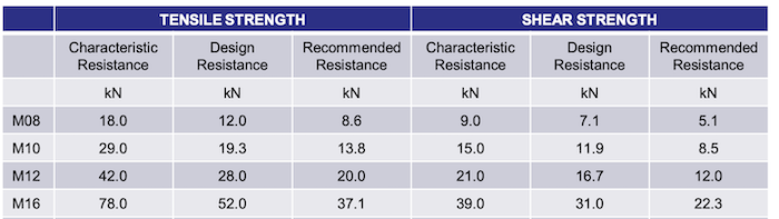 The below data is only relevant to the studs, it is not an indication of achievable fixing load, this will be determined by the type of resin, concrete strength or any other base material or anchors they are used with