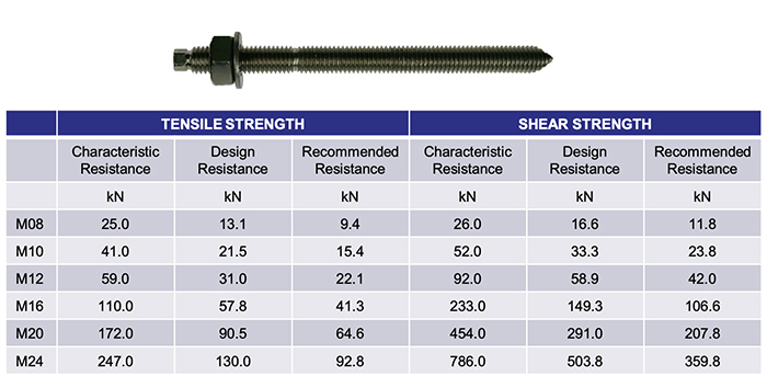The below data is only relevant to the studs, it is not an indication of achievable fixing load, this will be determined by the type of resin, concrete strength or any other base material or anchors they are used with