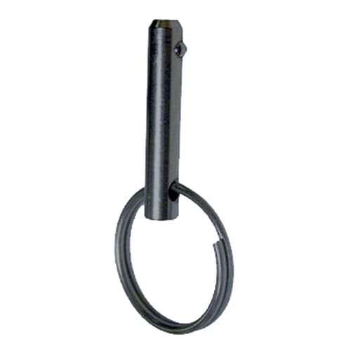 This fast release pin has a push in spring loaded ball bearing and a split ring for fast release and securing