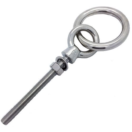 This ringbolt is a long shank eyebolt with a captive ring, it comes with a polished finish and is supplied with a nut and washer