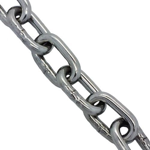 We supply our short link chain in: 2mm, 3mm, 4mm, 5mm, 6mm, 8mm, 10mm, 12mm and 16mm diameters available.