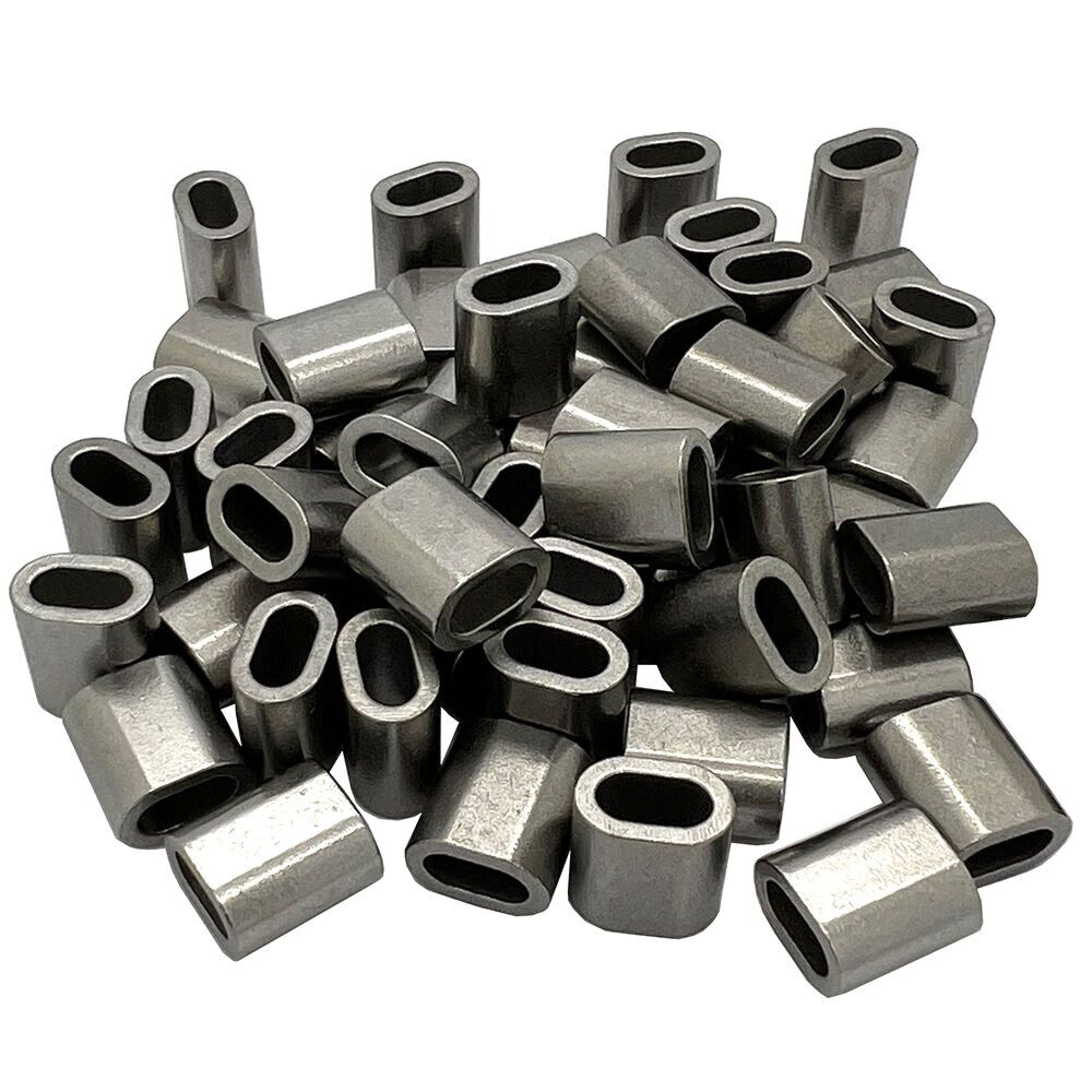 A4-AISI 316 marine grade wire ferrules, These need to be hydraulically crimped or swaged onto your steel wire rope to make a loop or an eye