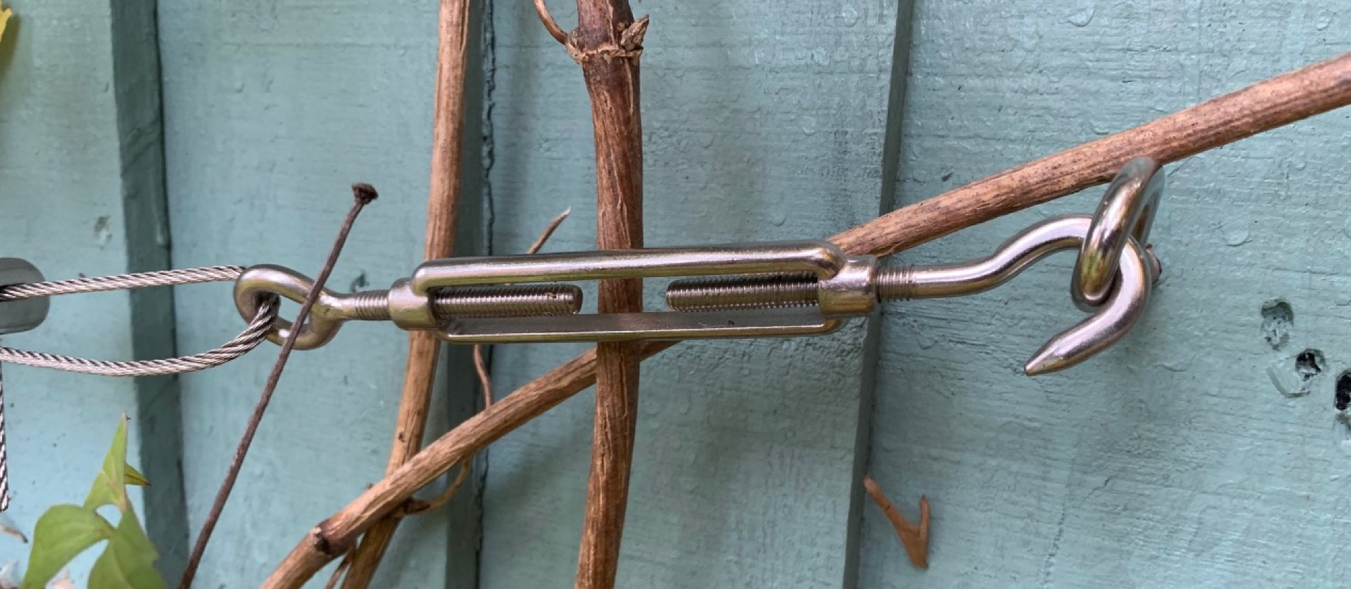 1 x tensioning turnbuckle is supplied for each run, simply loop the wire end through the eye of the turnbuckle, the hook end simply hooks over the supplied eye bolt for fast attachment. To gain tension on your run simply rotate the turn buckle body