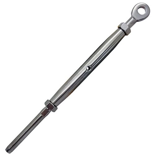 This rigging screw has an eye at one end and a swage sleeve the oppoiste end to suit 4mm diameter wire rope