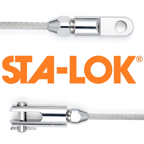 Take look at our wide range of A4 grade stainless swageless wire rope fittings from market leading manufacturer Sta-Lock. These wire rope terminals are completely swageless and can be fitted on site using very simple hand tools. They will work under constant loading and variable shock loading, and in most cases these terminals are stronger than the wire rope they are designed to be used with.;
